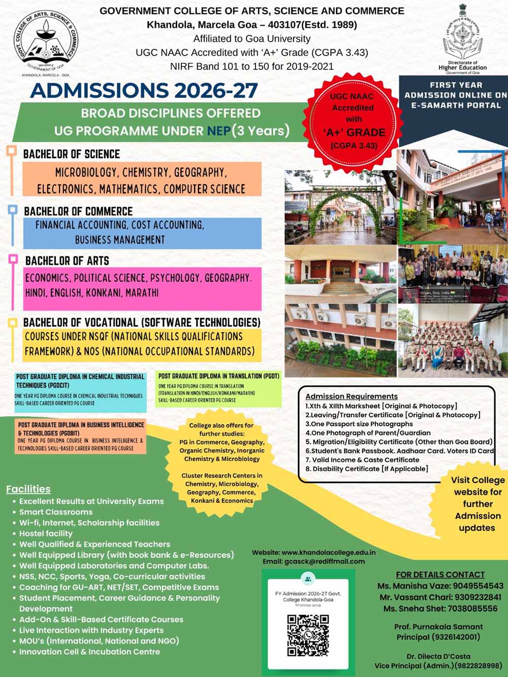 This year, the First and Second Year students have a vast array of courses to choose from. These courses have been offered by our Institution as per Goa University and UGC Guidelines for the National Education Policy 2020. NEP 2020 seeks to transform Higher Education by providing flexibility to students in terms of choice of subjects to study and academic pathways. Students will be able to choose from a variety of majors, minors, multidisciplinary, ability enhancement, skill enhancement and value added courses. This will remove the rigid boundaries between disciplines and create new possibilities for students to choose and